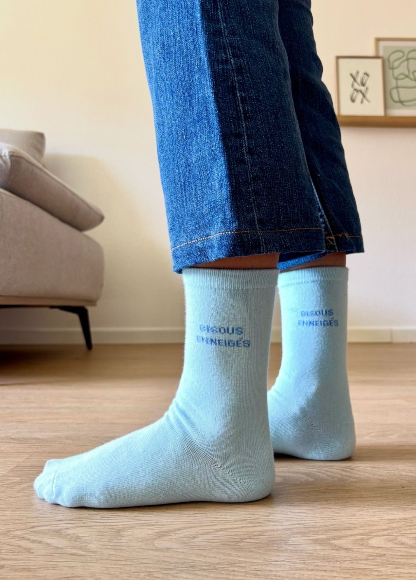 Apportez une touche de douceur hivernale à votre tenue avec nos chaussettes Bisous enneigés ! Avec leur teinte givrée et leur message tendre, elles évoquent les câlins au coin du feu, les flocons qui tombent en silence et les moments chaleureux au cœur de l’hiver. Parfaites pour cocooner à la montagne, offrir un cadeau plein d’affection ou simplement se faire plaisir, ces chaussettes allient confort, poésie et esprit alpin. À porter fièrement… avec le cœur au chaud même quand il neige dehors !