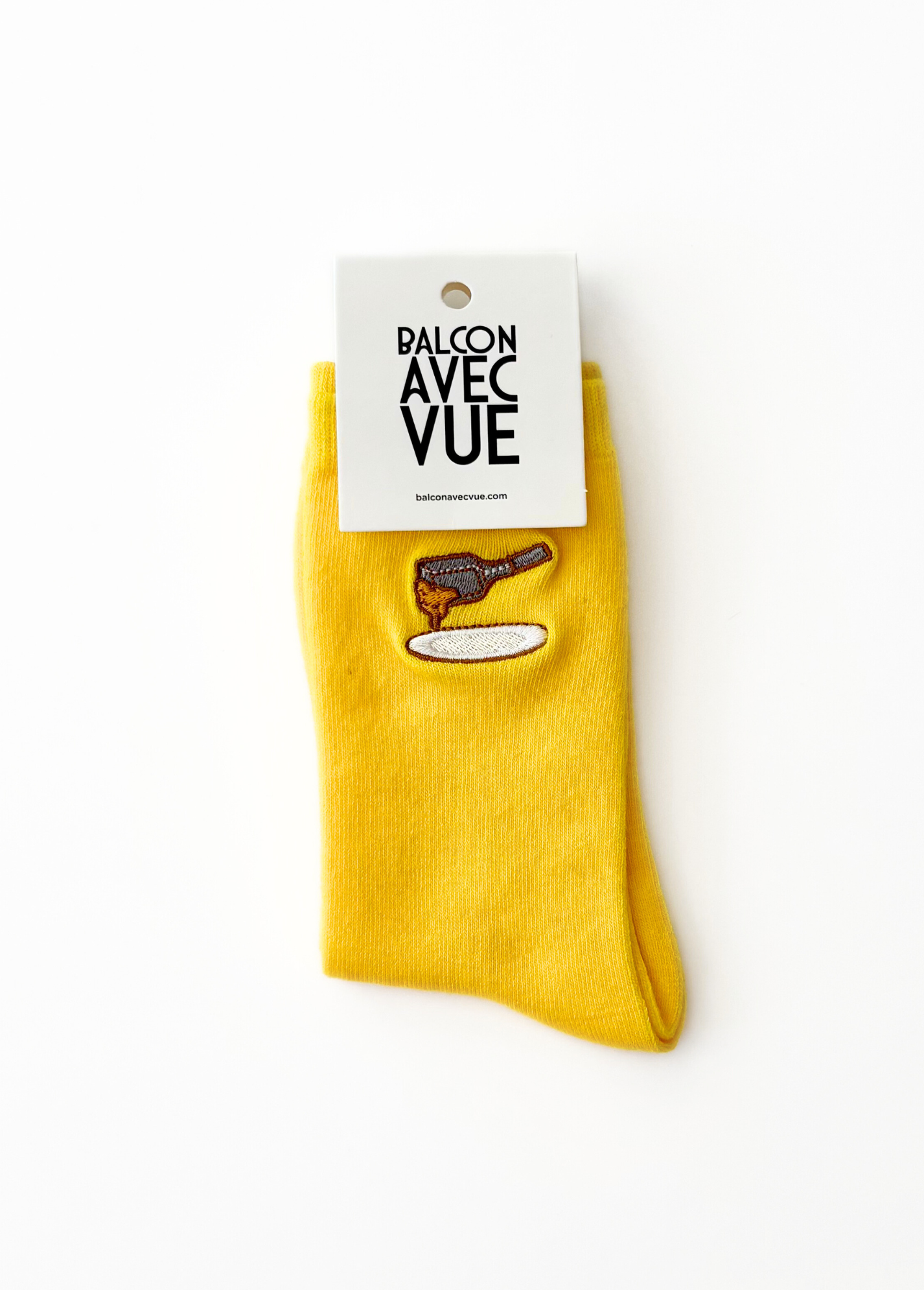 Célébrez la star incontestée des soirées d’hiver avec nos chaussettes Raclette ! Avec leur teinte jaune fondue et leur broderie savoureuse, elles rendent un hommage assumé au fromage qui réchauffe les cœurs (et les estomacs). Idéales pour traîner à la maison, partager un repas entre amis ou revendiquer haut et fort votre amour pour les traditions alpines, ces chaussettes allient confort, humour et esprit montagnard. À porter fièrement… avec une spatule à la main ! 🧀