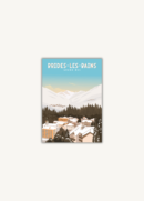 Blotti au pied des montagnes, Brides-les-Bains apparaît dans cette illustration comme une oasis de calme et d’élégance. Le village thermal s’étend doucement au creux de la vallée, tandis que le Grand-Bec domine l’horizon de sa silhouette majestueuse et silencieuse. Une atmosphère apaisée, légère comme l’air pur des cimes, enveloppe la scène. Cette œuvre traduit à la fois le charme discret d’un village alpin et la splendeur des sommets environnants, offrant un instant suspendu entre bien-être, nature et contemplation.