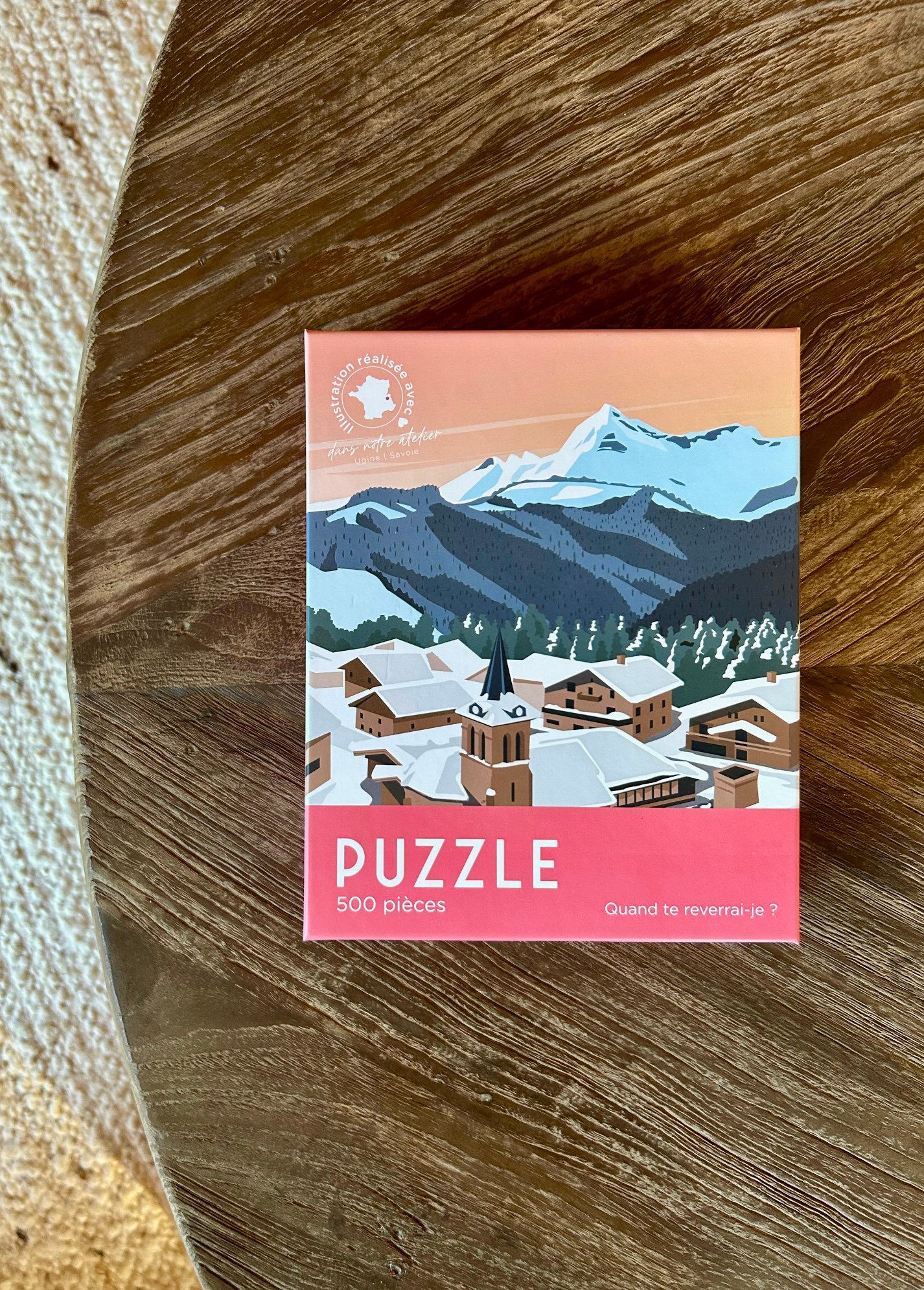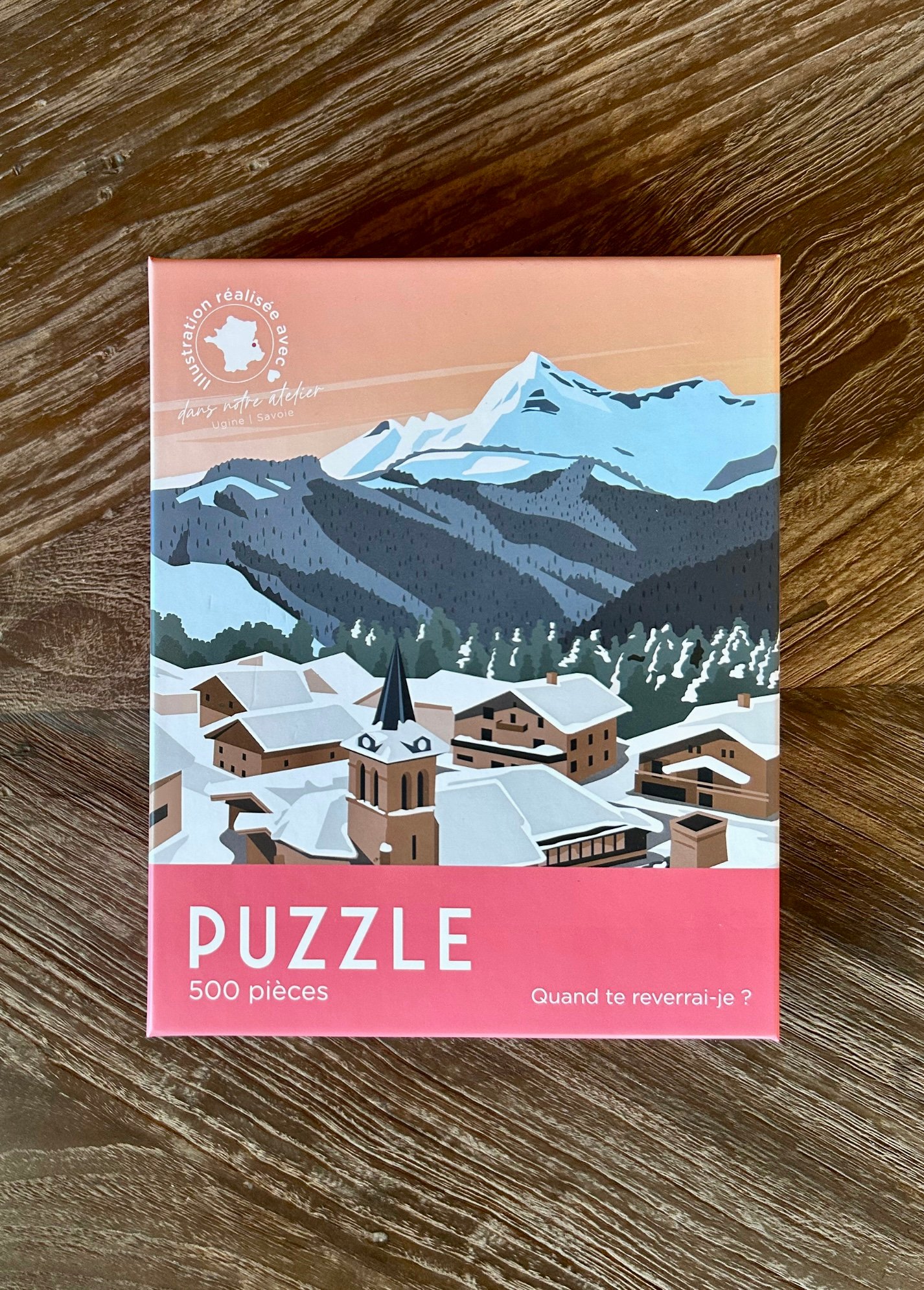 Avec « Quand te reverrai-je ? », laissez-vous emporter par la nostalgie douce des hivers à la montagne. Cette illustration dévoile une station enneigée baignée de lumière, où chalets, sapins et sommets se fondent dans un décor paisible. Chaque pièce évoque le souvenir des journées de ski, du froid sur les joues et des soirées au coin du feu. Un puzzle empreint de douceur et de mélancolie, comme une promesse de retrouvailles avec la magie des montagnes.